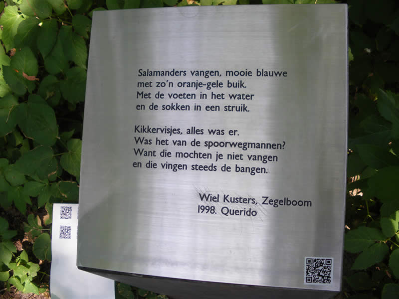 U start aan het station van Meerssen.Met het stationsgebouw in de rug gaat u naar links, over de Proost de Beaufortstraat. U neemt de eerste weg links richting Sportpark Marsana (S.V. Meerssen); deze weg komt uit bij een brug over de Geul. U gaat over de brug en ziet rechts het eerste gedicht: