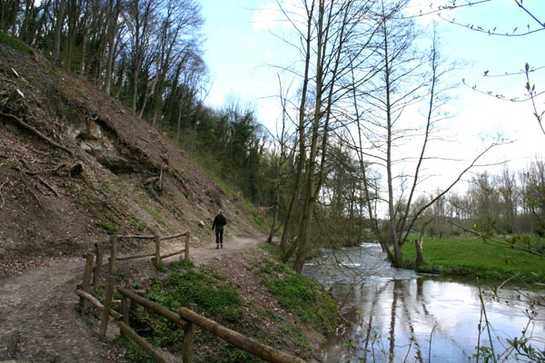 Aan de overkant groen, gras, in de hoge zomer hooi. Koeien struinen er tussen door en houden de boel kort. Verder weg geruis van verkeer en geroezemoes van de camping. Vogels laten zich daar niet door storen. Stoeien naar hartenlust en fluiten hun hoogste lied. Ook dat, al eeuwenlang.