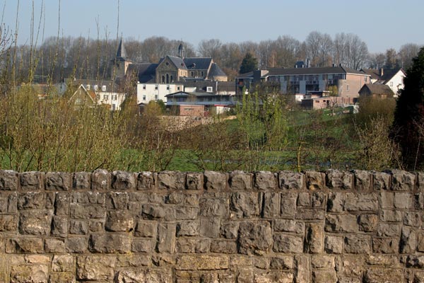 Ook hier vind je een mooi gedicht. Op een plaats die ogenschijnlijk niet zo mooi is. Pal aan de weg hangt dit gedicht. Maar ondanks het verkeer dat hier vlak bij je is, kun je de droom ervaren die in het gedicht wordt beschreven. Kijk maar naar het onder de brug doorstromende water, laat je meevoeren in de richting van de geheimzinnige Schaelsberg. Of naar het mooie kerkje van Schin op Geul dat net met z’n toren boven de bomen uitsteekt. Kijkend in de richting van de kerk sta je met je rug naar de Keutenberg, de uitdaging voor menig wielerliefhebber. Vlak bij deze plaats klatert een beekje en stort zich in de Geul. Geul en beekje, ze stromen samen door de bocht en zijn verdwenen. Maar jij hebt gezien dat het gebeurde. Hier op die plek, zo vlak langs de weg in Schin op Geul.